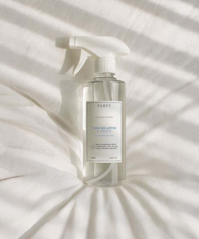 Uma deliciosa e perfumada água de tecidos, para ser borrifada sobre roupas, roupas de cama, cortinas e estofados, sempre que quiser perfumá-los.